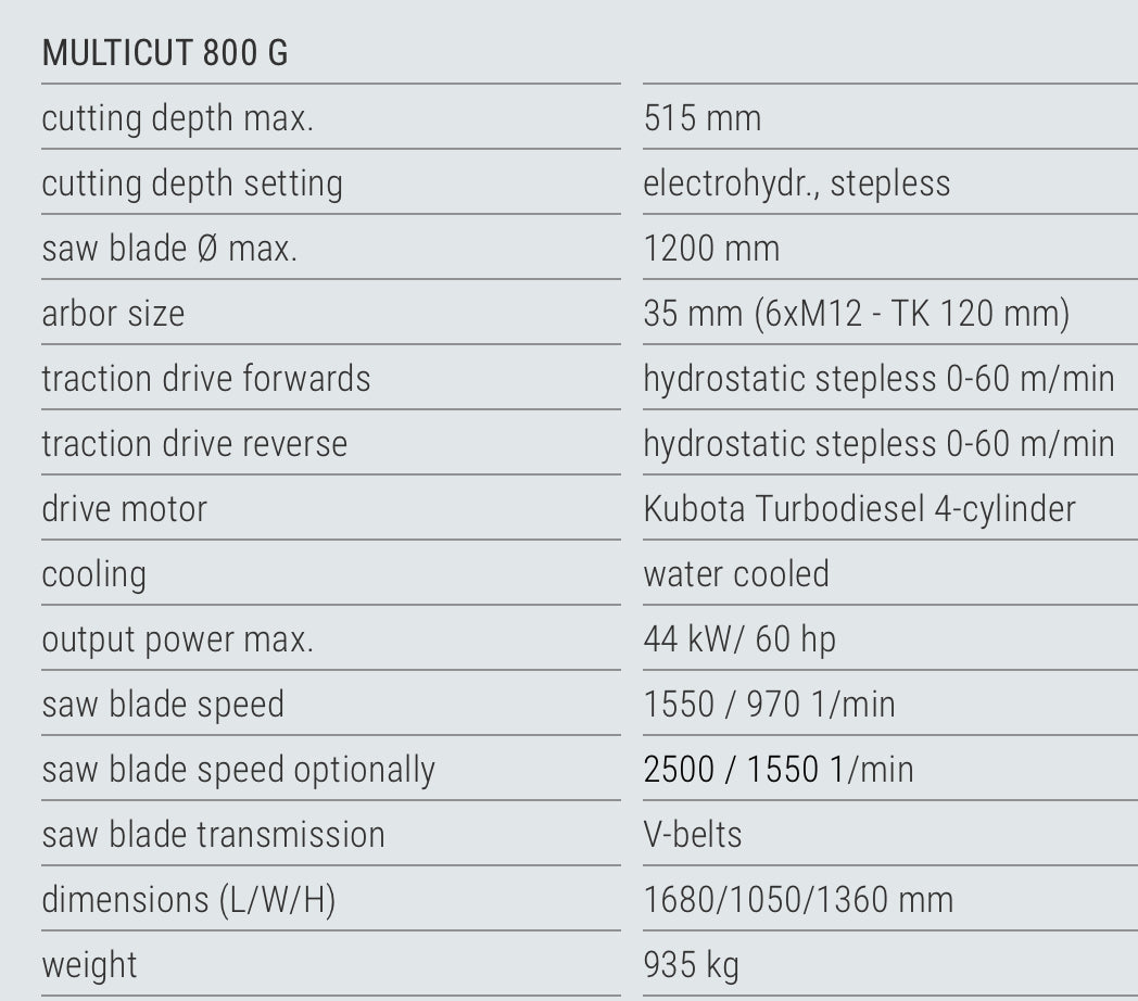 - Electro-hydraulically controlled drive motor and saw blade speed for ideal saw blade cutting speed on various applications